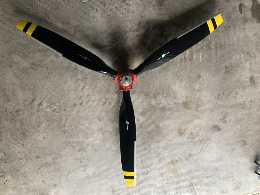 Erica tripala passo variabile elettrico, pale in carbonio, mozzo Ergal con estremità blindate, colore nero, mozzo rosso, usata molto poco, praticamente nuova attacco e bulloneria standard