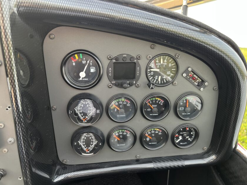 Strumenti: RPM, Airspeed, MAP, Variometer, Altimeter, Fuel, EGT, CHT, G meter, Oil Pressure, Oil Temp, Voltmeter, Fuel Pressure