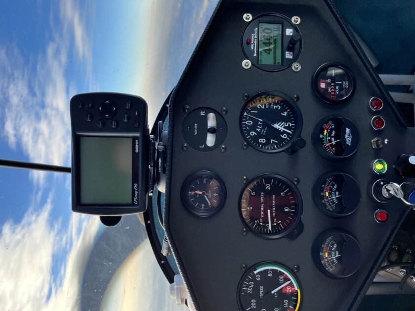 Pompa elettrica per rifornimento carburante, temperatura olio e teste, anemometro, altimetro, variometro, pallina, radio icon bc-179, interfono, spie carburante, paracadute balistico Bra 1050 scaduti